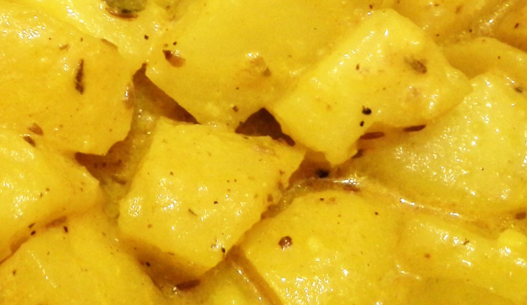- Verser le mélange de yaourt, bien mélanger pour enrober les cubes de pomme de terre.