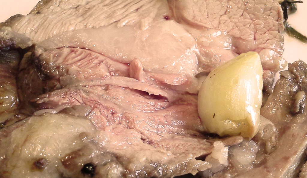 - Servir en tranches avec le jus de cuisson et les gousses d’ail confites.