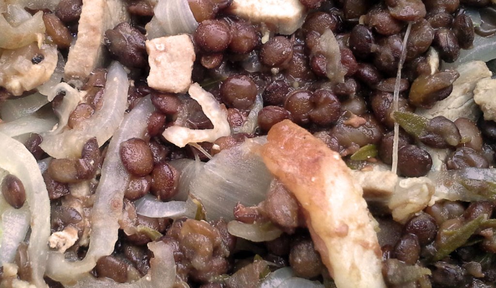 - Quand l’oignon est devenu translucide, ajouter les lentilles.
