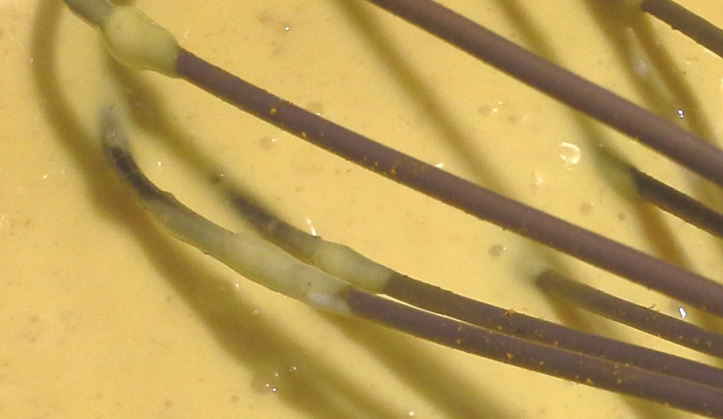 - Remettre sur le feu et ajouter progressivement le reste du lait sans cesser de tourner à l’aide du fouet.