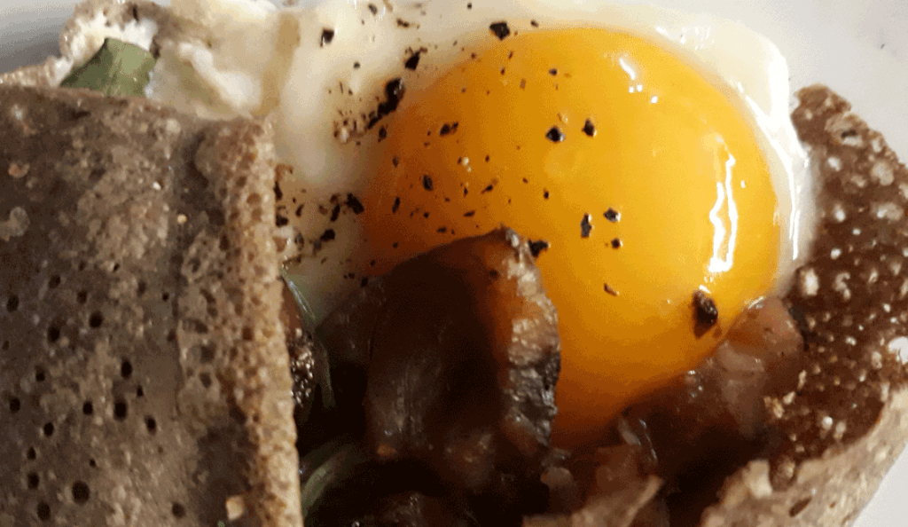 - Dans une poêle crêpière chaude à peine graissée, déposer une galette.