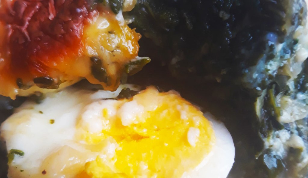 - Verser les épinards dans le fond, disposer les demi-œufs sur toute la surface.