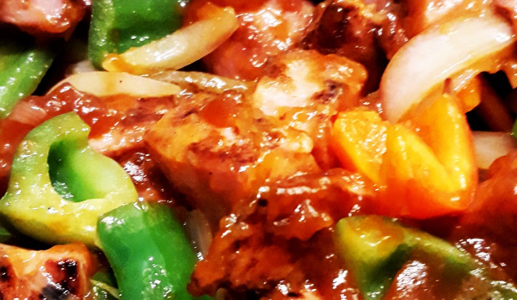 - Verser la sauce, mélanger en faisant cuire jusqu’à ce qu’elle épaississe.