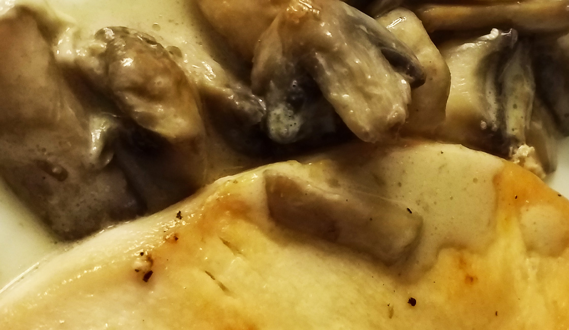 - Remettre les escalopes dans la poêle, faire réchauffer quelques secondes. Déposer la crème fraîche, brasser rapidement.