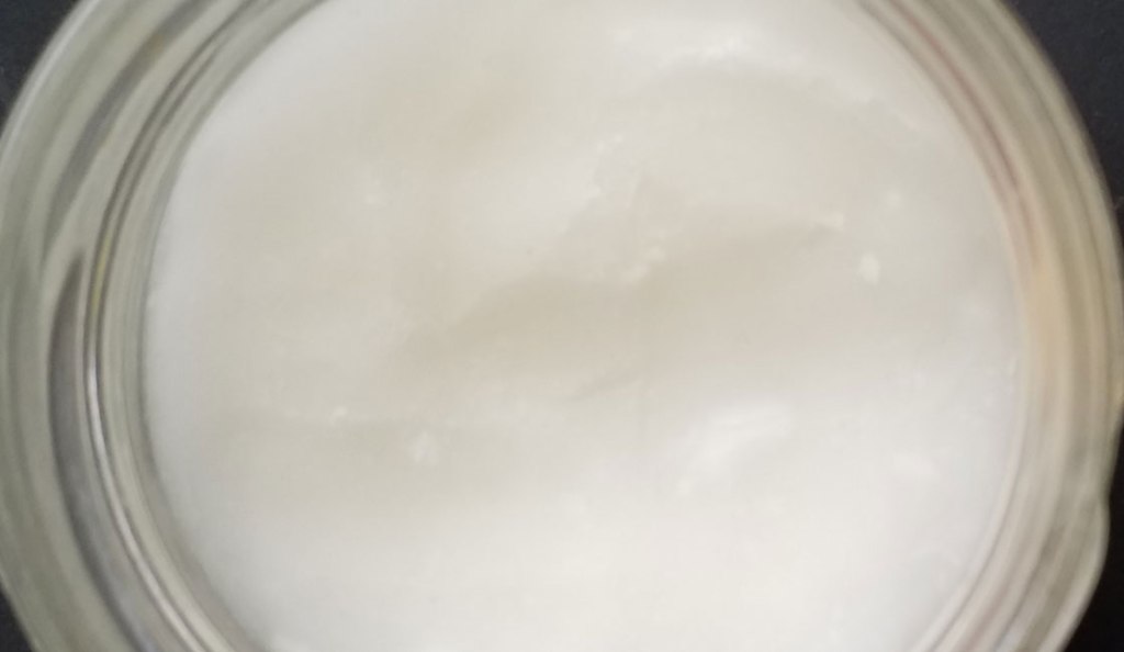 - Faire fondre la cire puis l’huile de coco au bain marie dans le mini pot de confiture, y mélanger la fécule et le bicarbonate.