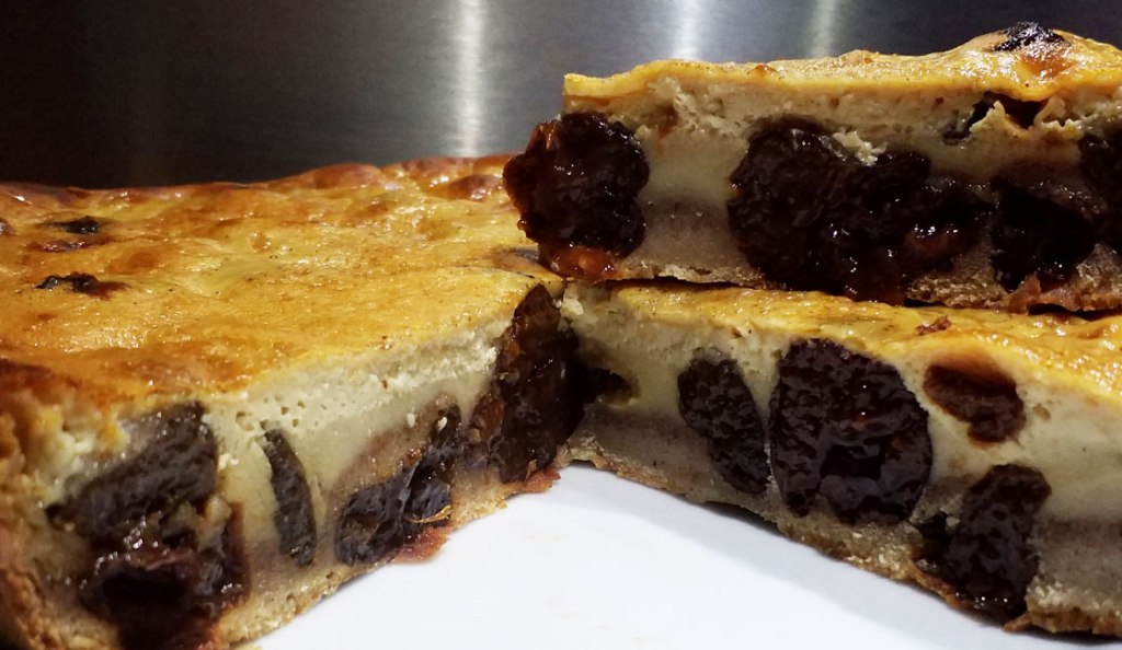 - Beurrer et fariner un moule de 26 cm de diamètre. Y répartir les pruneaux, puis verser l’appareil aux œufs.