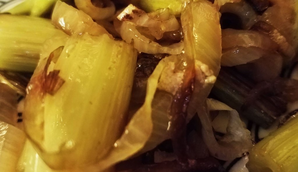- Dans une poêle, faire chauffer l’huile, y verser les céleris et l’échalote, bien mélanger.